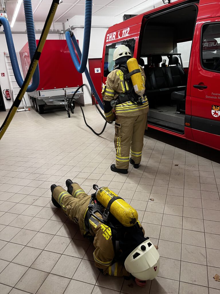 Inzwischen ist es bei uns Standard, dass Kameraden, die für den Atemschutzlehrgang vorgesehen sind, vorab an unserem internen Training teilnehmen. Ziel ist eine möglichst realistische Vorbereitung auf den Lehrgang und auf den späteren Einsatz. Wir treffen uns in der Regel einmal wöchentlich im Gerätehaus und trainieren gemeinsam. Der Schwerpunkt liegt auf körperlicher Belastbarkeit, Ausdauer und Kraft, gleichzeitig fließt bewusst auch die mentale Vorbereitung mit ein. Belastung unter Stress, Umgang mit Erschöpfung, Entscheidungsfähigkeit, all das sind Faktoren, die im Einsatz oft entscheidender sind als reine Fitnesswerte.